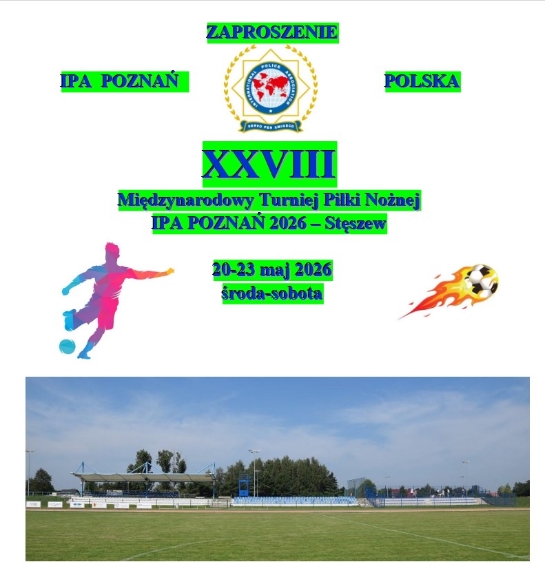 XXVIII Międzynarodowy Turniej Piłki Nożnej IPA POZNAŃ 2026 przez admin | 29 stycznia, 2026 0 komentarzy https://ipapolska.pl/wp-content/uploads/2026/01/Zaproszenie-XXVIII-Turniej-IPA-Poznan-2026-Steszew.pdf